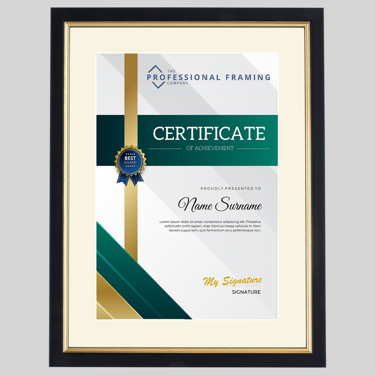 Your frame will be handmade in Great Britain to the highest standard using quality wooden frame moulding, featuring double pinned corners for strength and durability, landscape and fitted with top quality antiglare Plexiglass, ensuring your Certificate or Award is displayed at its best and offering protection from the damaging effects of UV light.