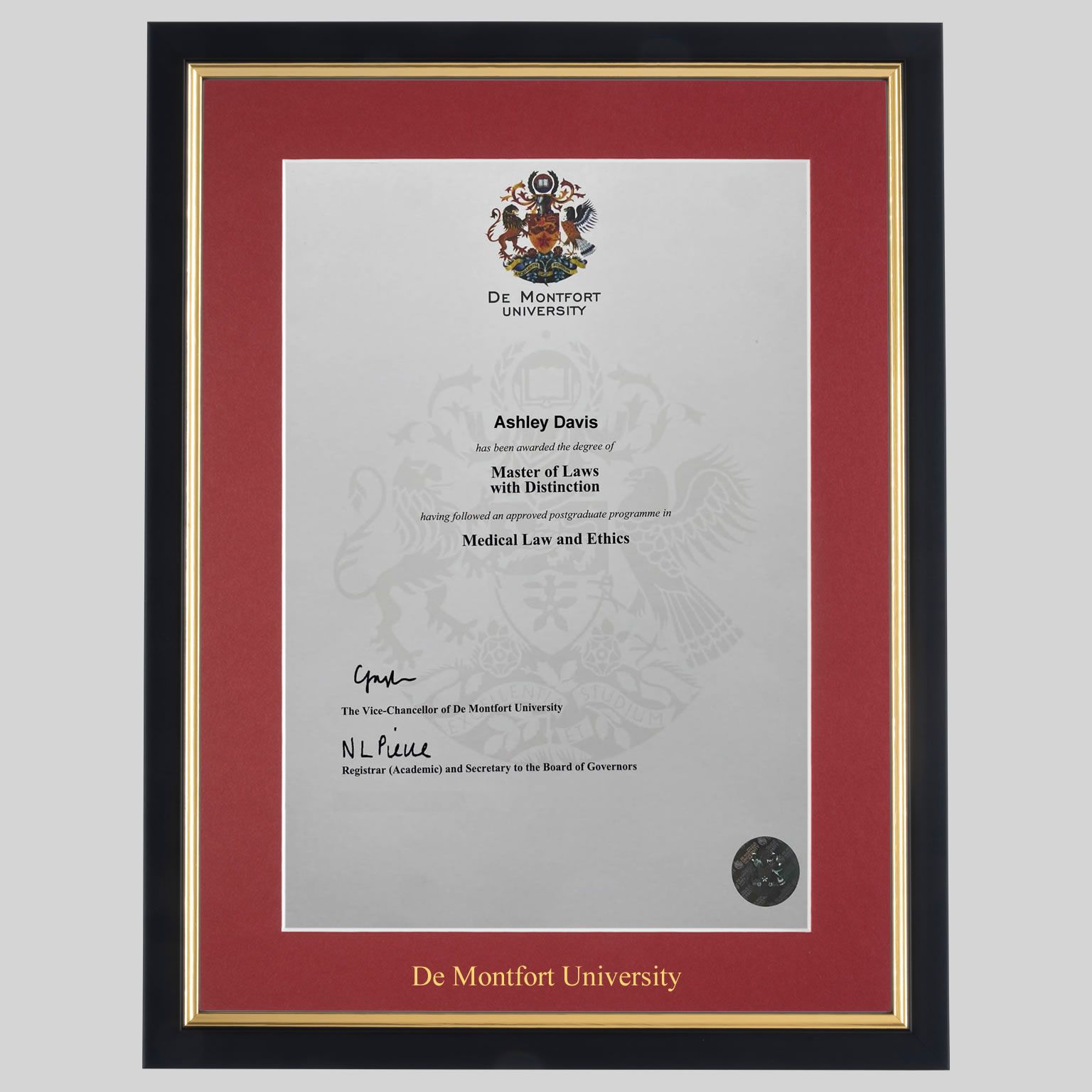 De Montfort University graduation certificate Frame
