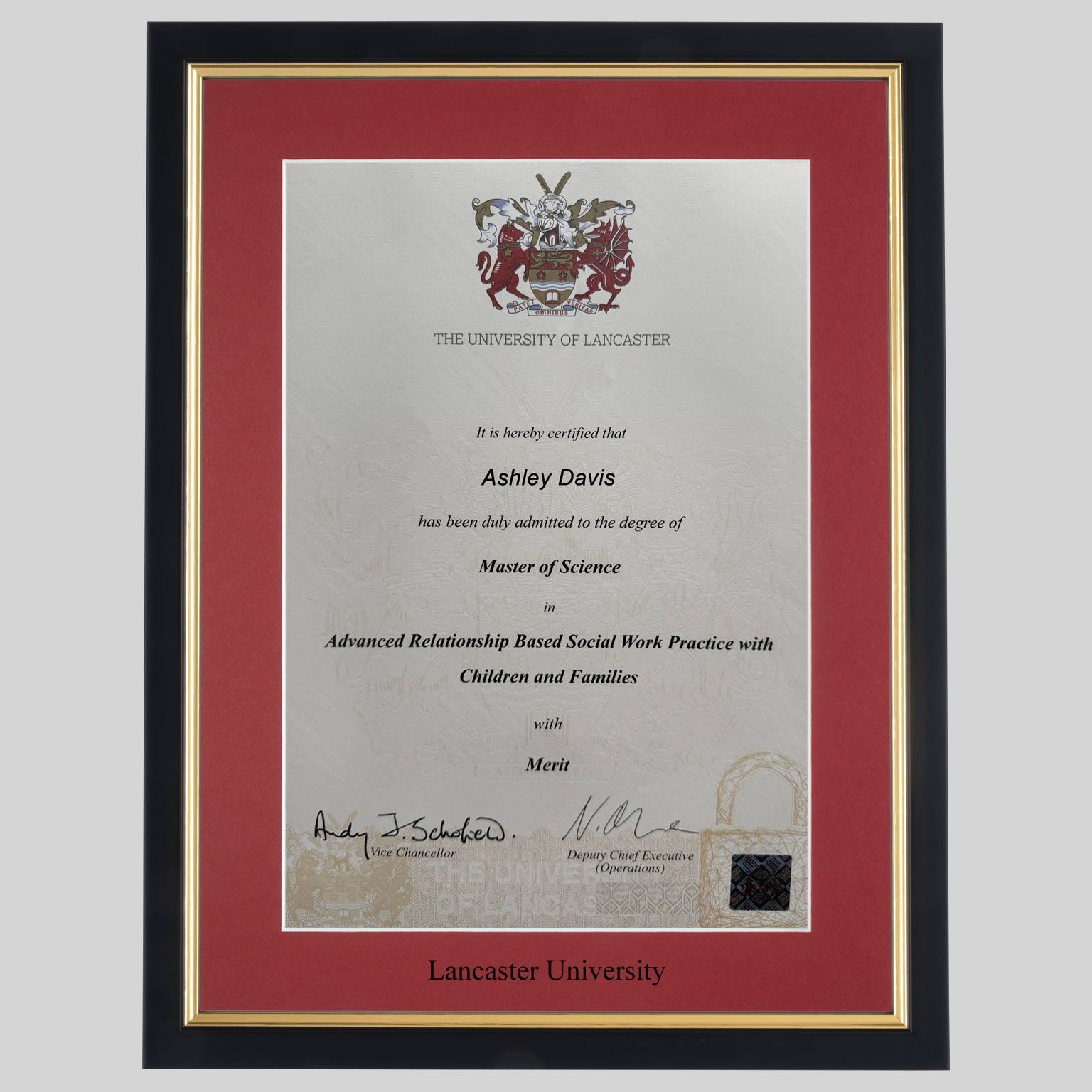 Lancaster University graduation certificate Frame