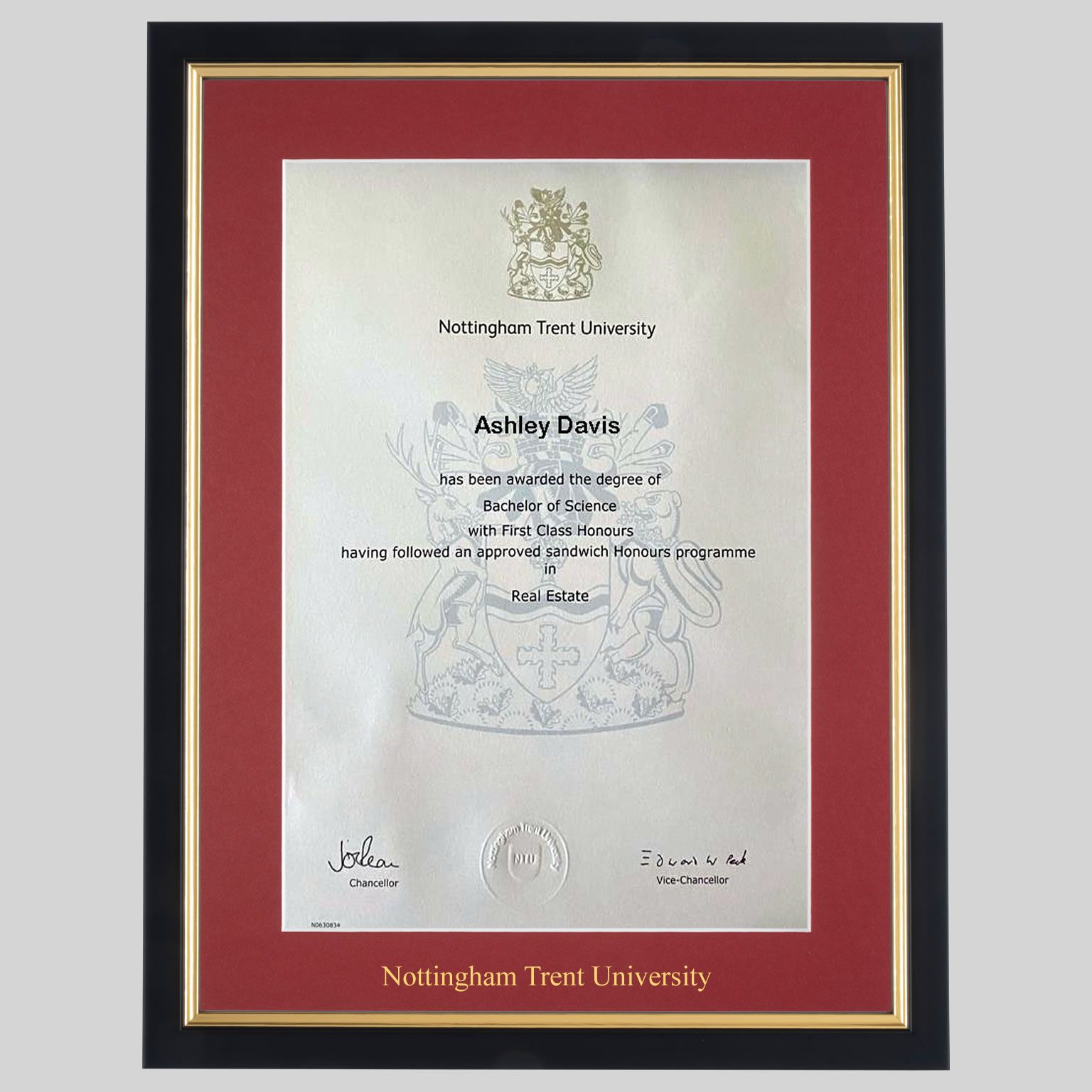 Nottingham Trent University graduation certificate Frame