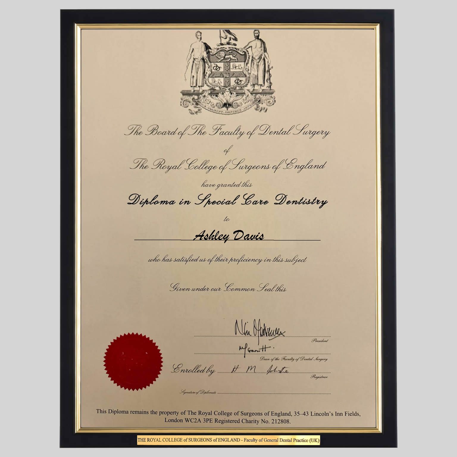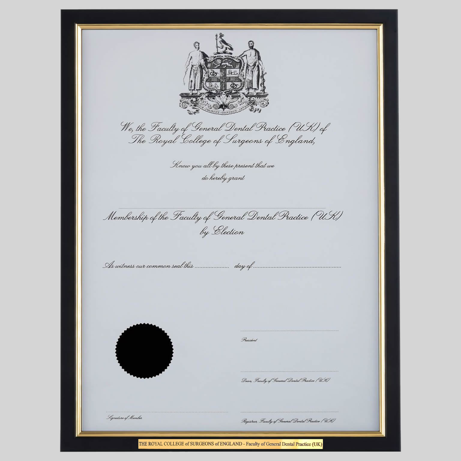 Royal College of Surgeons of England – Faculty of General Dental Practice UK certificate frame