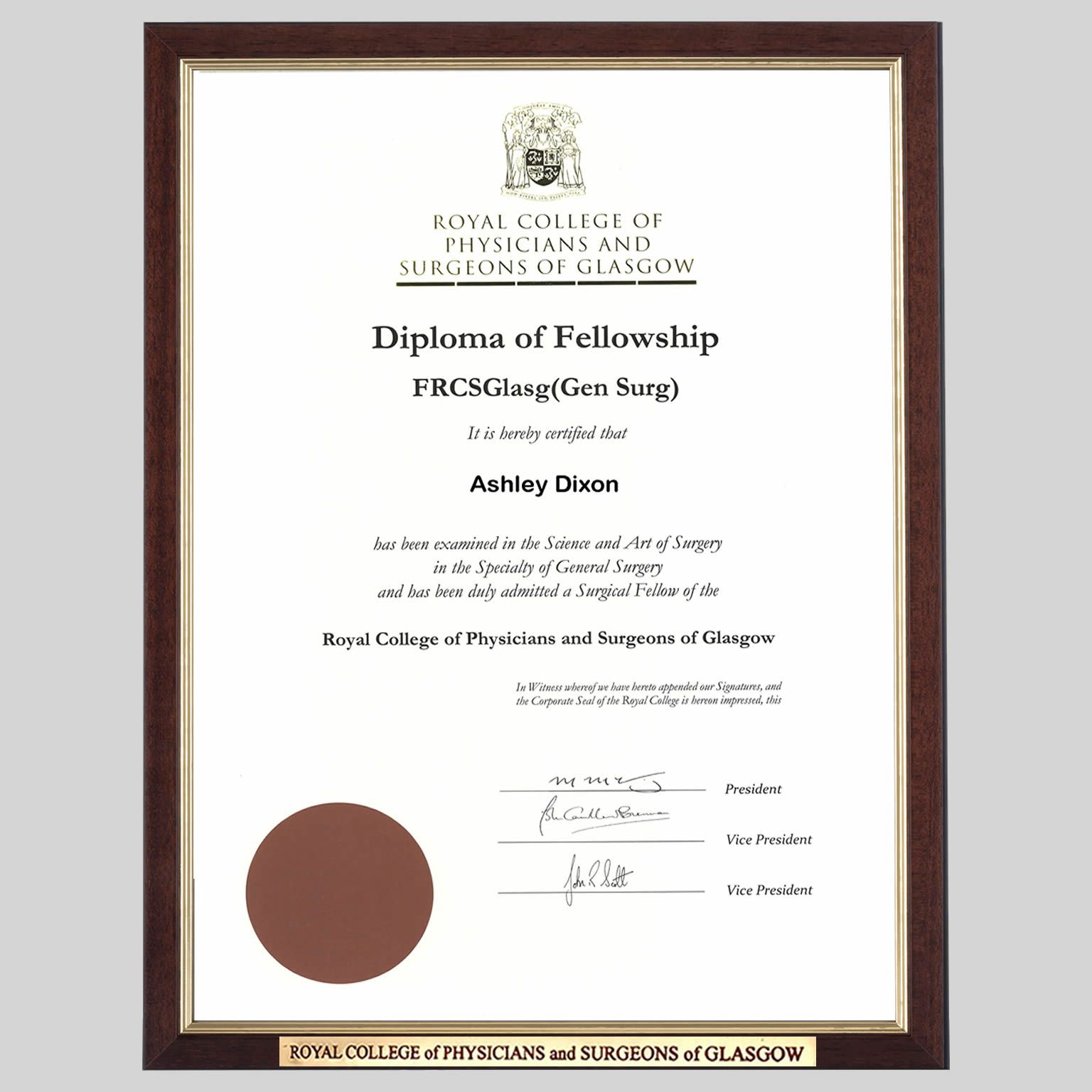 Royal College of Physicians and Surgeons of Glasgow certificate frame