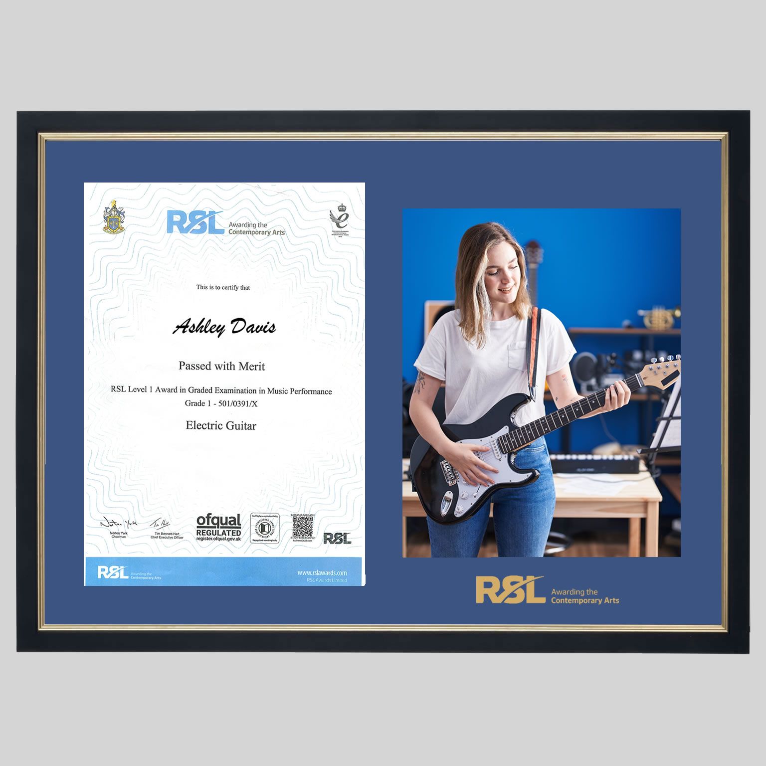 Your frame will be handmade in Great Britain to the highest standard using quality wooden frame moulding, featuring double pinned corners for strength and durability. A Pacific Blue mount will be custom-printed with the RSL Awards logo, using traditional hot foil printing on approved acid-free mount card. Your frame will then be fitted with antiglare shatter-resistant Plexiglass, ensuring your certificate and photo are displayed at their best, reducing the damaging effects of UV light.
