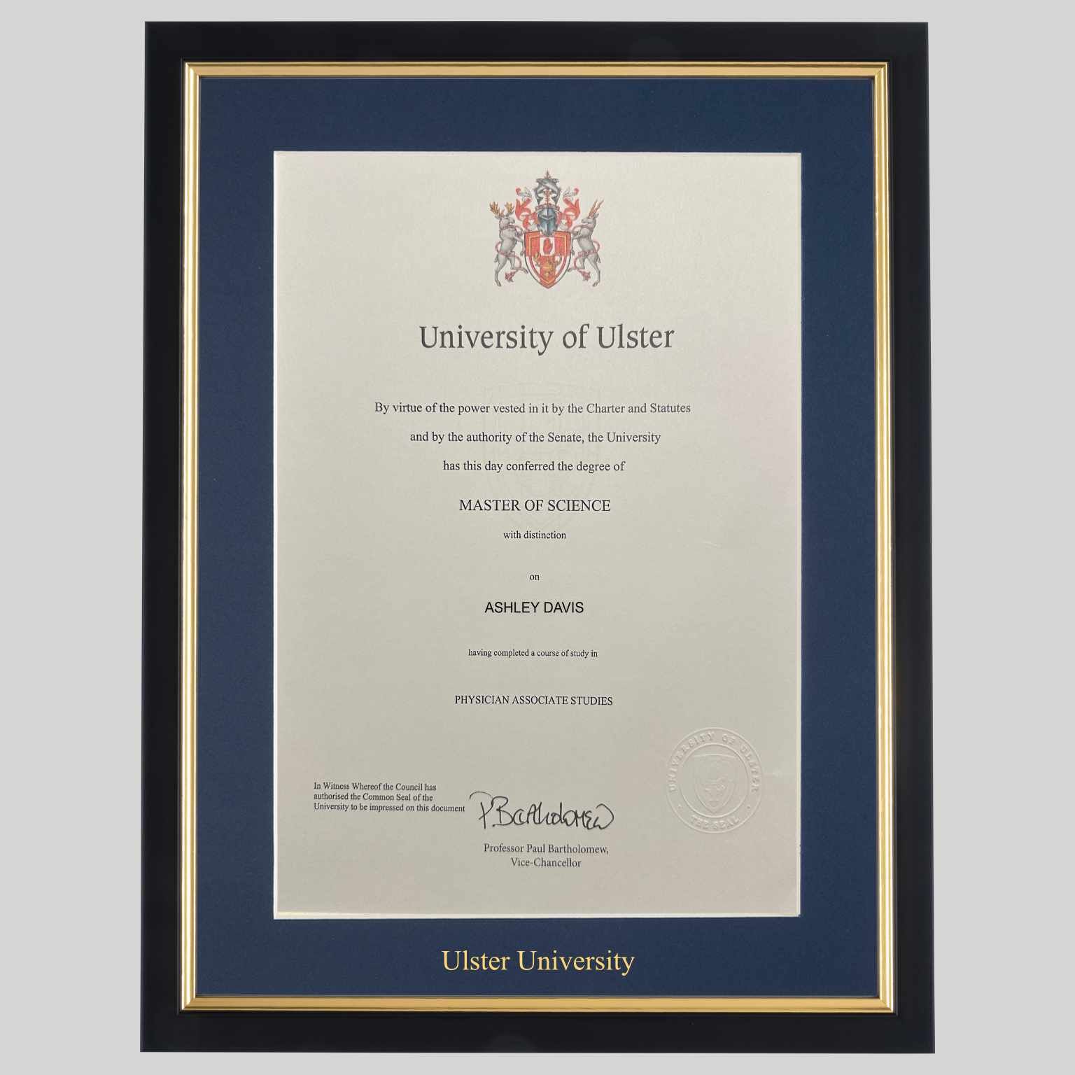 Ulster University graduation certificate Frame