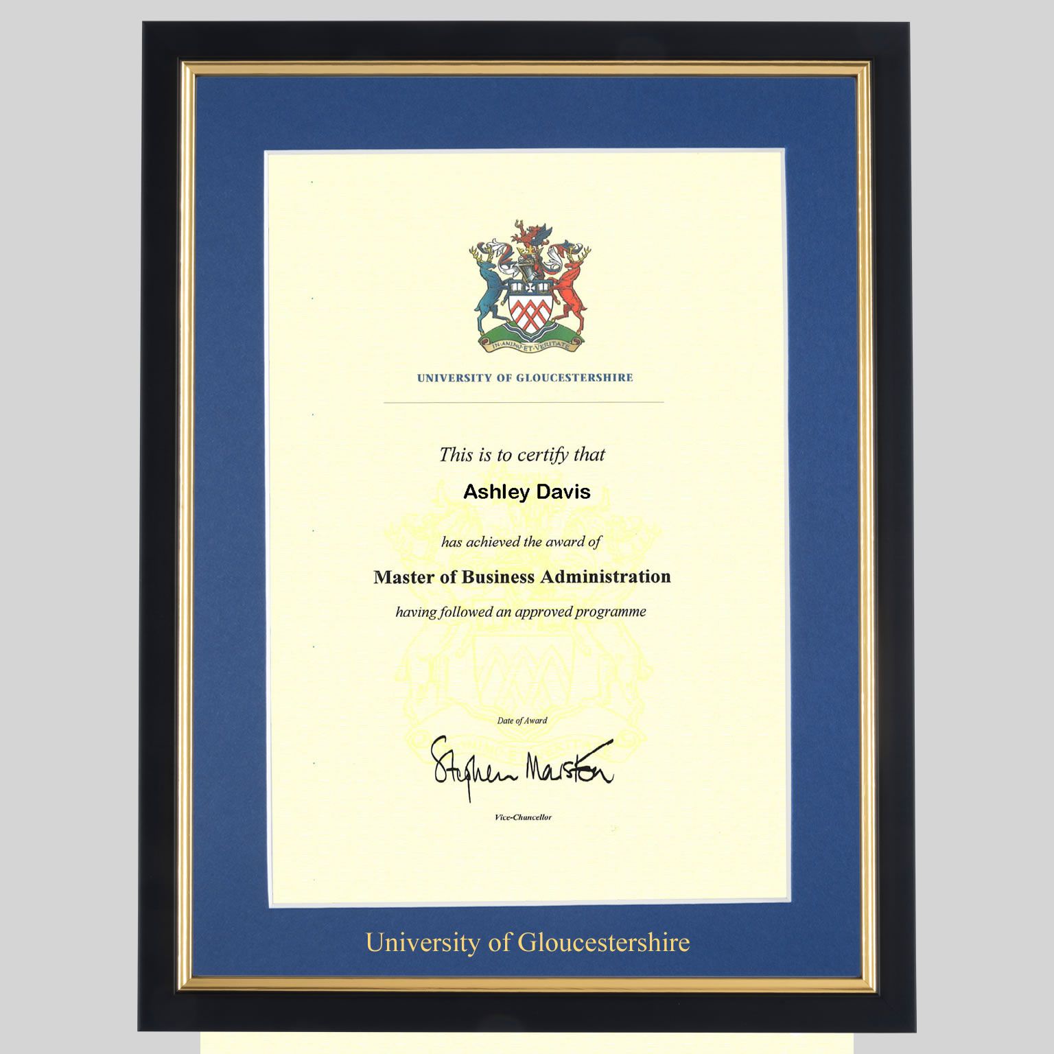University of Gloucestershire graduation certificate Frame