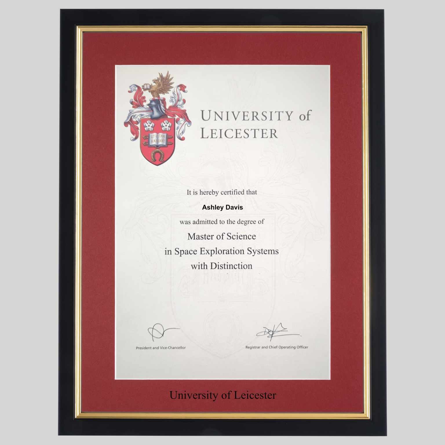 University of Leicester graduation certificate Frame