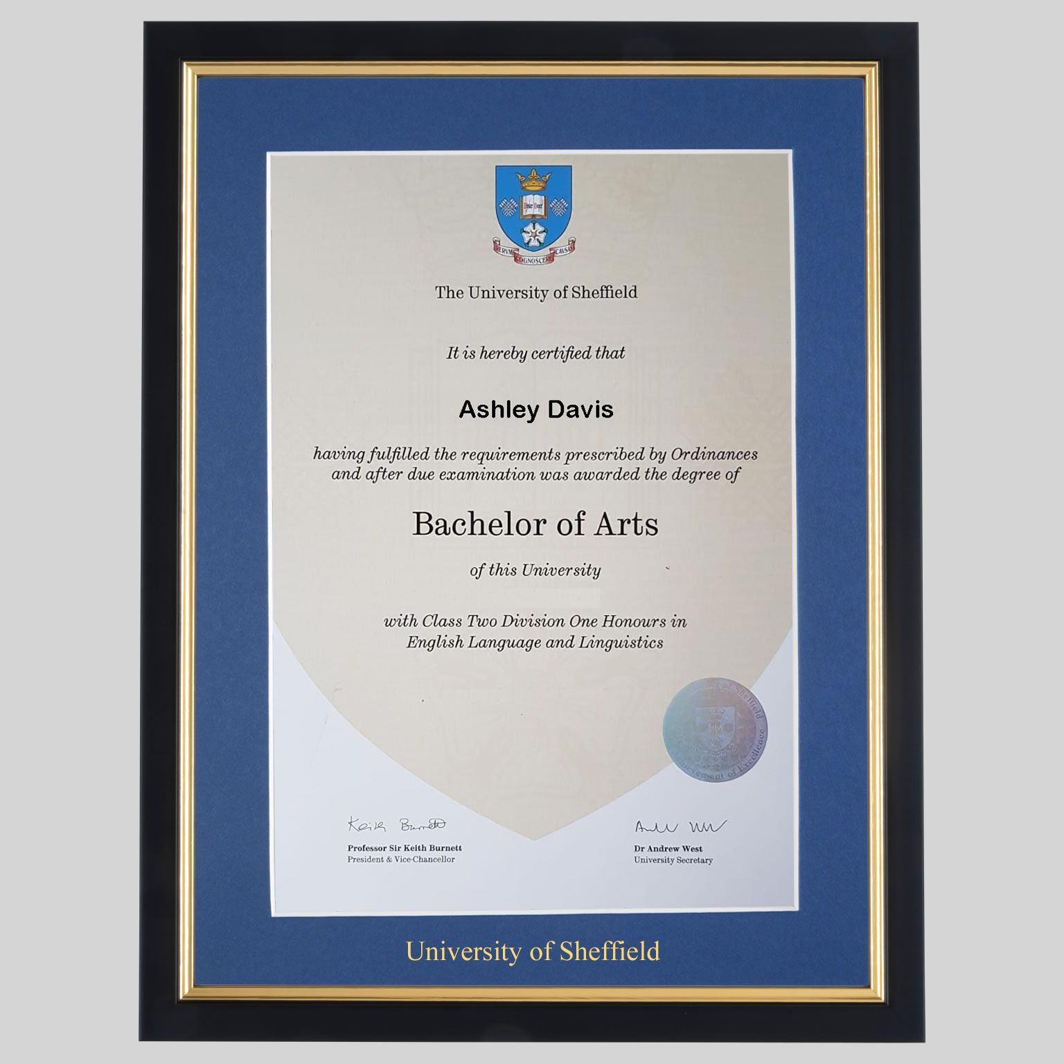 University of Sheffield graduation certificate Frame