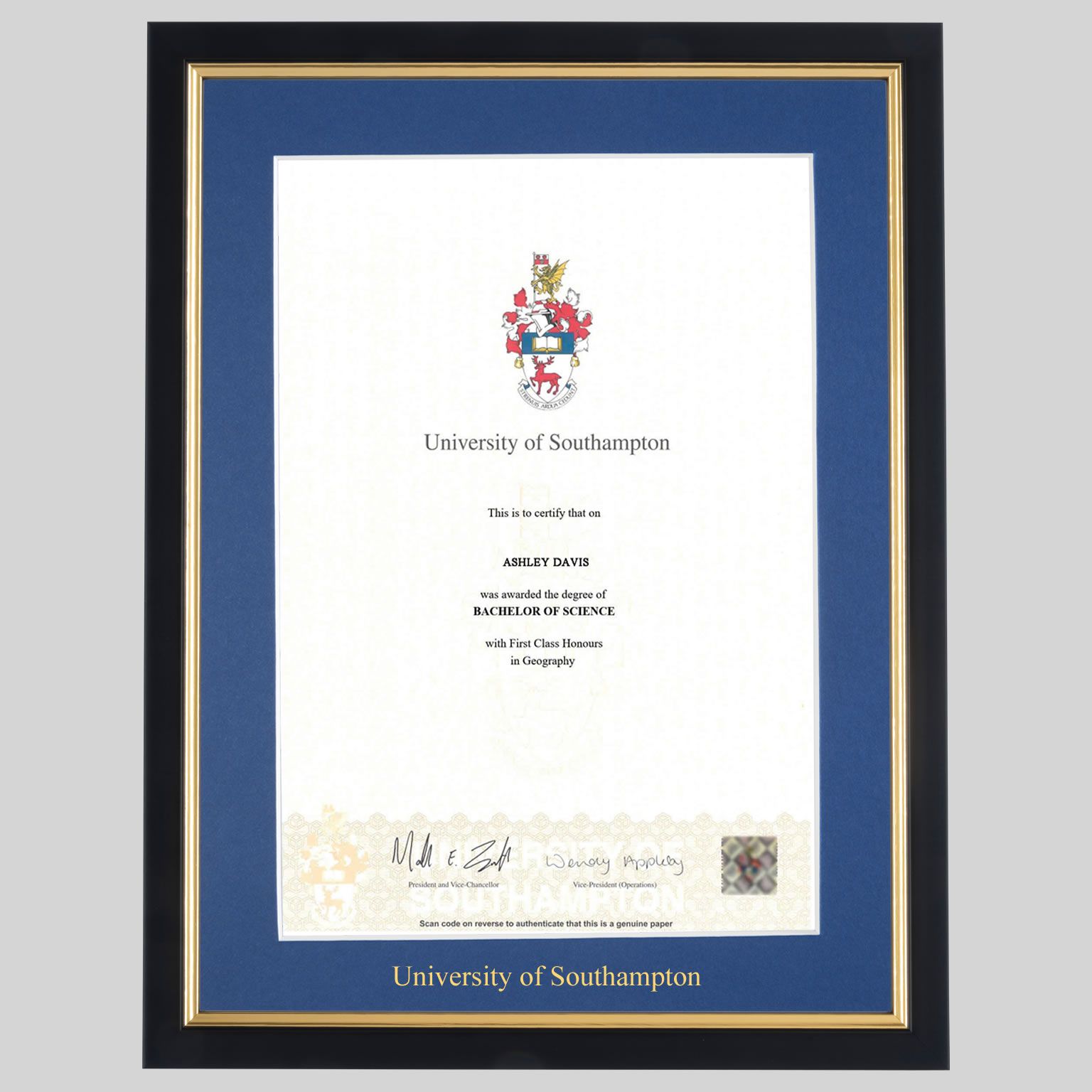 University of Southampton graduation certificate Frame