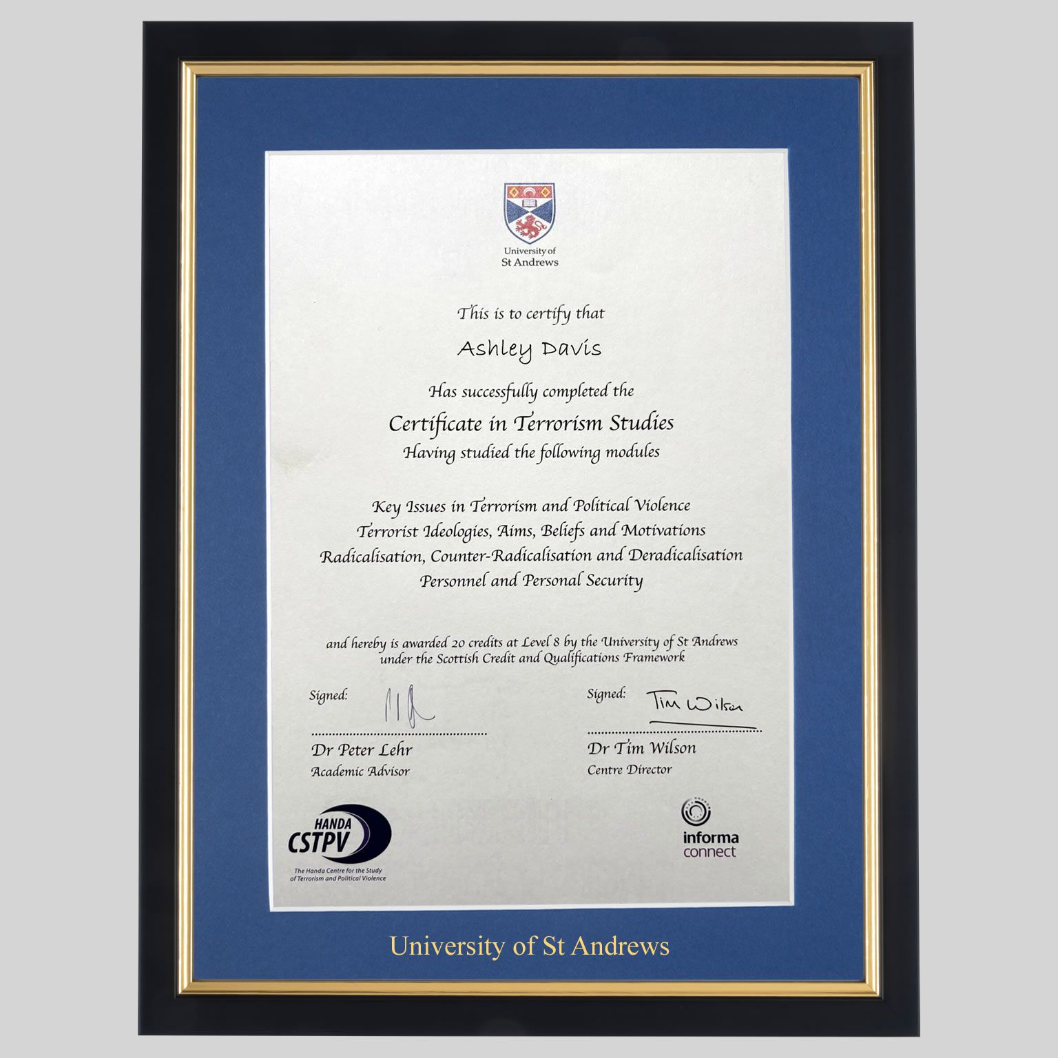 University of St Andrews graduation certificate Frame