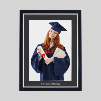 All our graduation photo frames are fitted with antiglare plexiglass as standard, ensuring your photograph will be displayed to its best whilst reducing the damaging effects of UV light. It will also include a unique mount, custom-printed with the name of your university, using traditional hot foil printing on approved acid-free mount card.