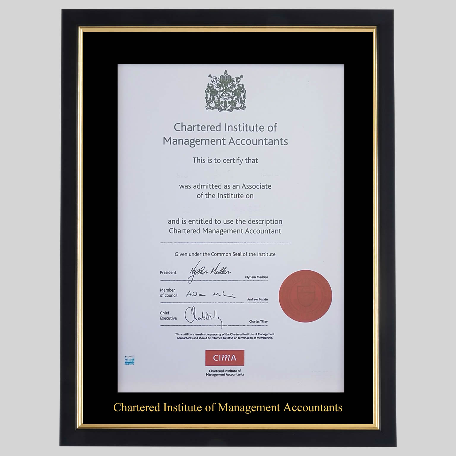 Chartered Institute of Management Accountants (CIMA/CGMA) certificate frame