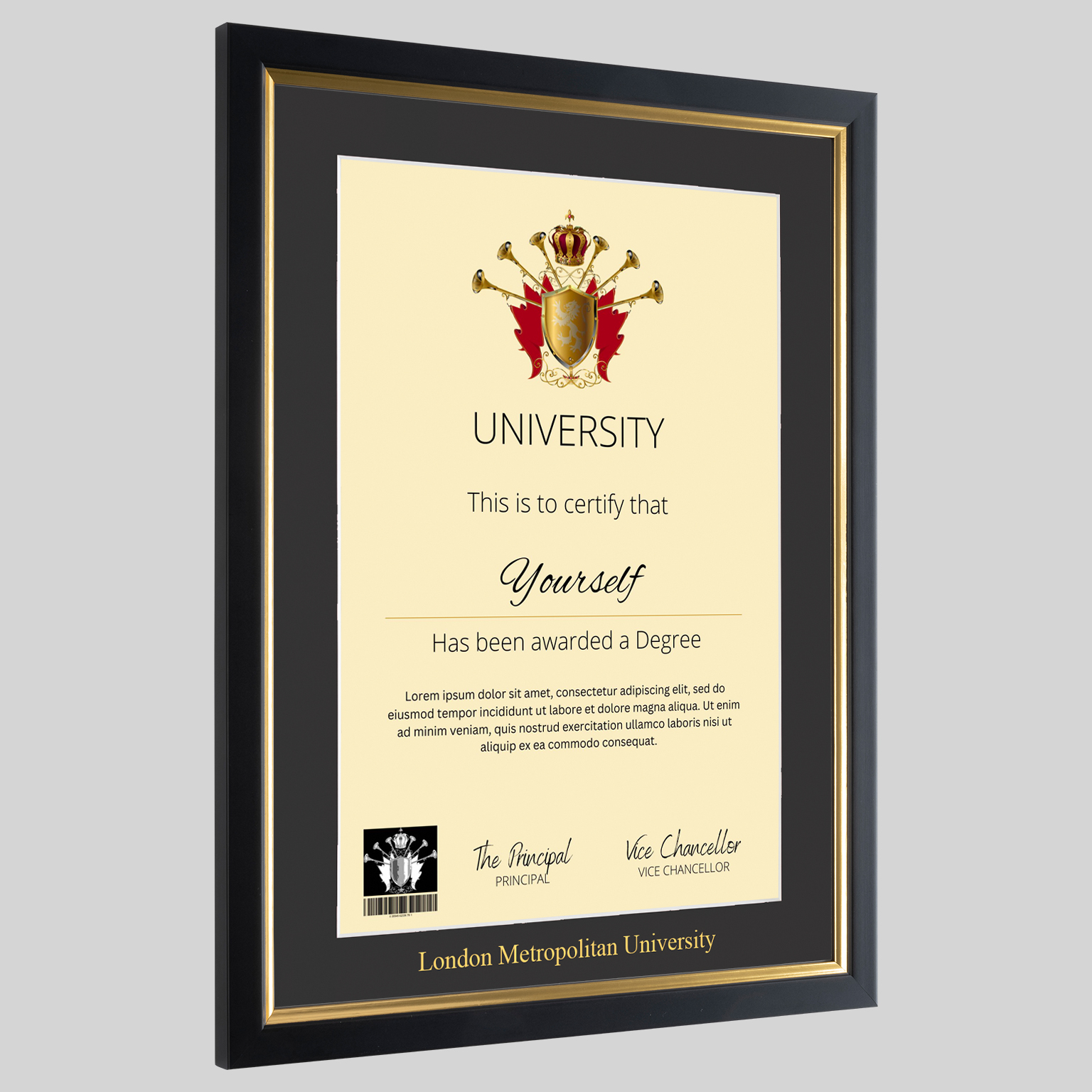 London Metropolitan University graduation certificate Frame