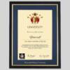 Your frame will be handmade in Great Britain – in your choice of colour – to the highest standard, using quality wooden frame moulding and featuring double-pinned corners for strength and durability. It will be fitted with antiglare Plexiglass, ensuring your portrait A4 graduation certificate is displayed at its best and reducing the damaging effects of UV light. Includes a unique blue mount, custom-printed with ‘Plymouth Marjon University’, using traditional hot foil printing on approved acid-free mount card. Removeable back-board allowing easy insertion and removal of your graduation certificate. Comes ready for wall hanging, and is suitable for the optional desk stand. See our hints and tips section for advice on putting your graduation certificate into your frame. Overall frame dimensions are 293mm w x 380mm h