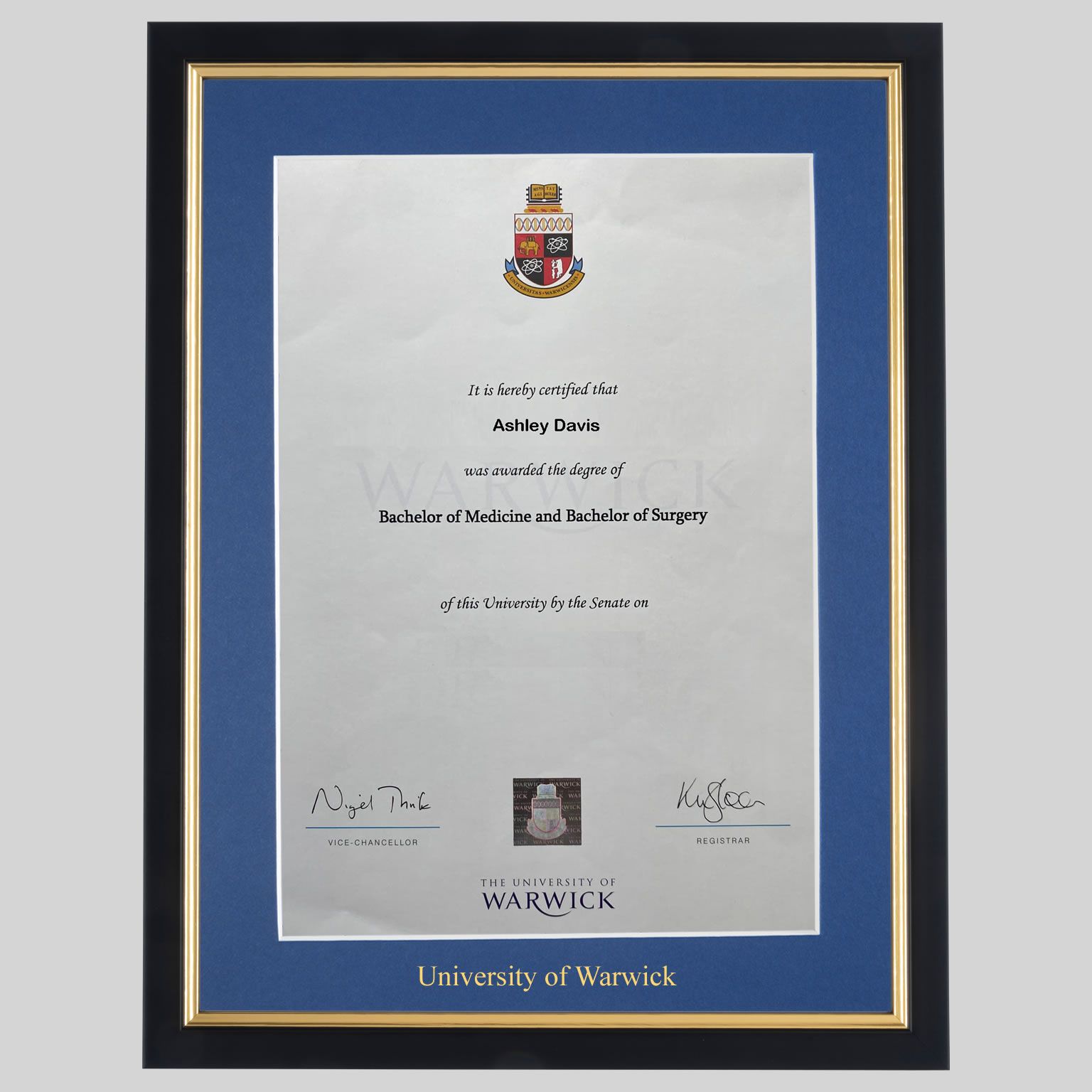 University of Warwick graduation certificate Frame
